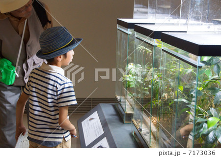 昆虫博物館で見入る孫と祖父