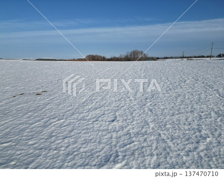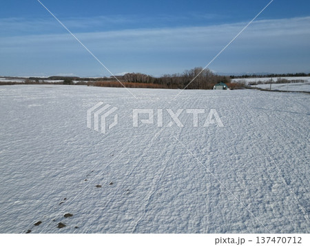 大空町の農村風景の冬の銀世界の空撮