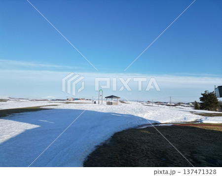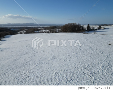 大空町の朝日ヶ丘公園の冬の銀世界の空撮