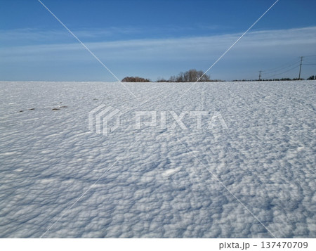 大空町の農村風景と防風林の冬の銀世界の空撮