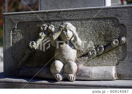 箕面瀧安寺観音堂石燈籠の見ざる石彫