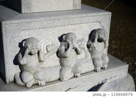 箕面瀧安寺観音堂石燈籠の三猿石彫