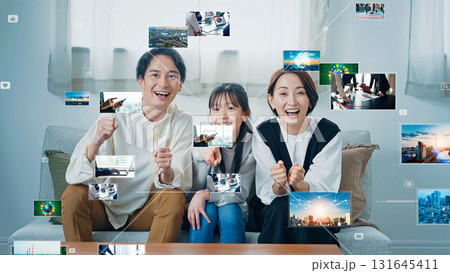映像コンテンツを見る家族