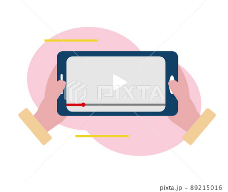 スマホで動画を見る 横画面 携帯とビデオ SNS イラスト