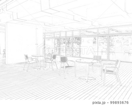 公共施設のインテリア。立川市役所。イラスト風の写真。モノクロ