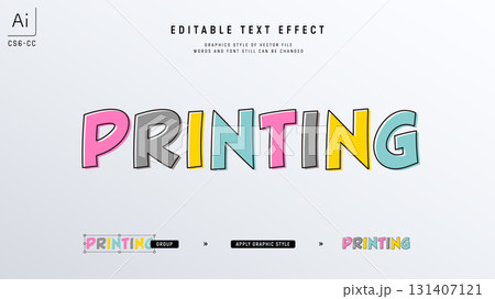 版ずれ印刷風のデザインのテキストエフェクト。編集可能なグラフィックスタイルテンプレート。