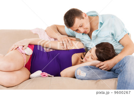 Schedule doctor appointment, young family therapeutic examination with late gestation period cartoon vector illustration, isolated on white.