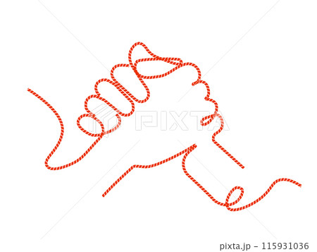 糸で描かれたような組み合う手(線画・一筆書き風)