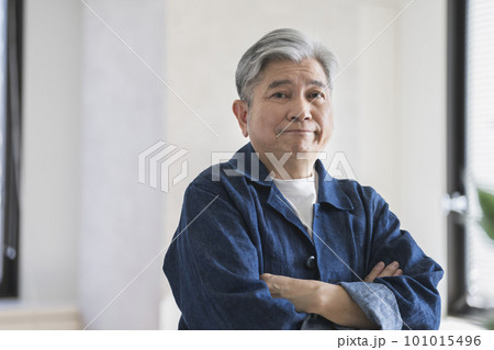 腕組みをしながら視線を向けるミドルシニア男性 ポートレート