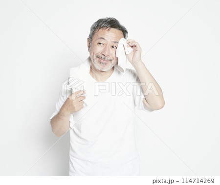 シミやしわがある中年男性