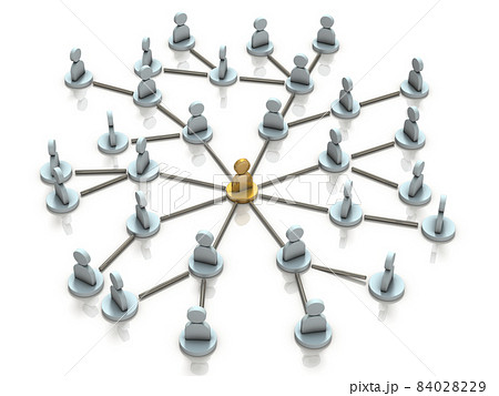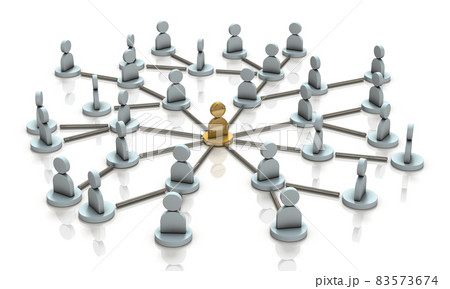 派閥の人脈と中心人物を表すアブストラクト。白バック。3Dレンダリング。