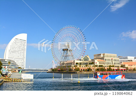 横浜市、横浜ランドマークタワーとYOKOHAMA AIR CABINの風景