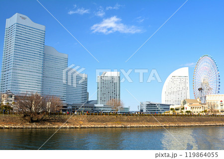 日本の横浜都市景観 桜木町駅前の横浜ランドマークタワーや横浜ロイヤルパークホテルなどを望む=23日