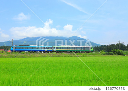 磐越西線「会津磐梯山を背景に走るあいづSATONO」