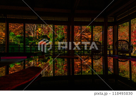秋の季節に映える幻想的な紅葉リフレクション(漆塗りテーブル) 環境芸術の森(佐賀県唐津市)