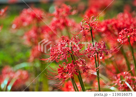埼玉県川越市平塚新田 青空のもと入間川土手一面の曼珠沙華(彼岸花)群生
