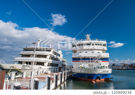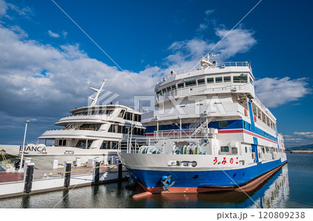 琵琶湖大津港に停泊する観光船ビアンカと学習船うみのこ