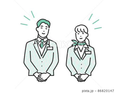 笑顔でお客様に接客をする宿泊業者のスタッフのイメージイラスト素材