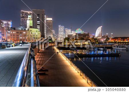 横浜みなとみらい地区の夜景 ランドマークタワー 赤レンガ倉庫 観覧車