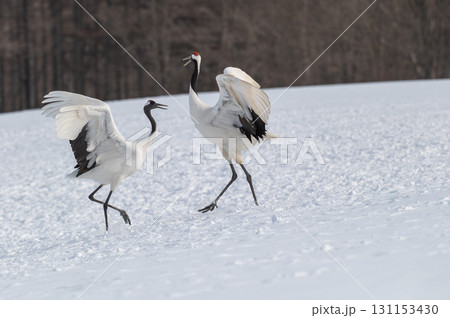タンチョウ鶴の求愛ダンス-道東の冬景色