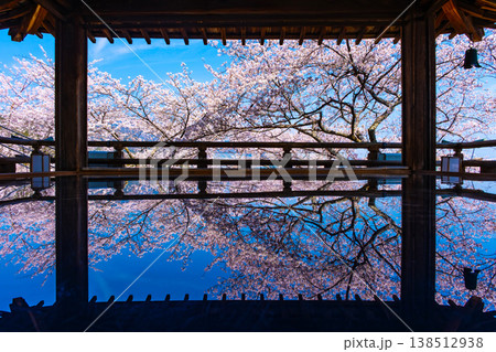 桜咲く三井寺 桜と観月舞台 三井寺の風景 床に映る桜の風景 滋賀の観光名所 不死鳥の寺