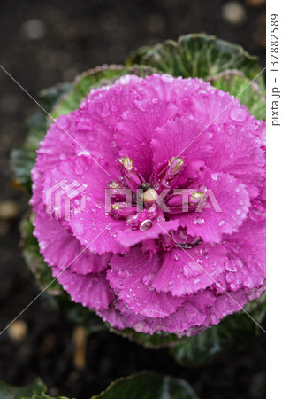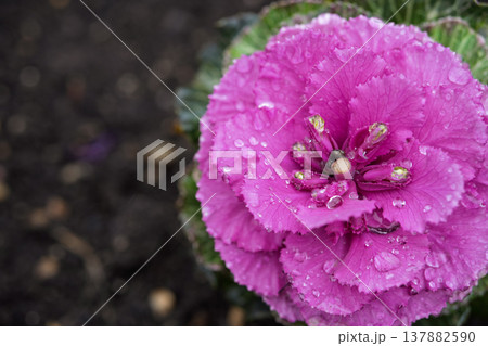 冬の背景素材・紫色切れ葉種ハボタン・横位置