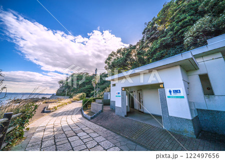 日本の横須賀都市景観 観音崎に立つ観音埼灯台までの道順-17 トイレがある