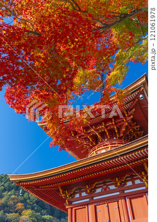 秋の京都 善峯寺 紅葉に包まれた多宝塔