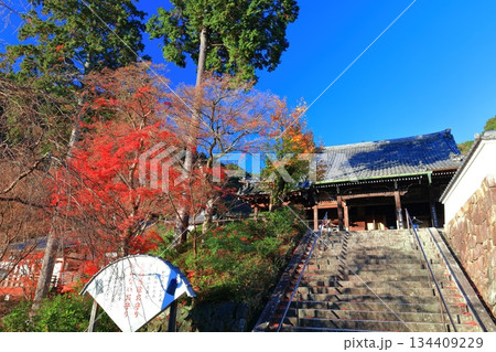 秋の京都 善峯寺 紅葉に包まれた薬師堂と蓮華寿院旧跡庭