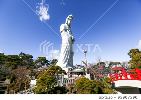 仙台天道白衣大観音(仙台大観音)地上100m12層 三十三観音 右手に如意宝珠 左手に水瓶