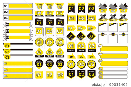 1・2・3 数字アイコンとフレームのセット イエロー