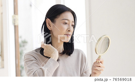 美容・ビューティー 髪を触るミドル女性