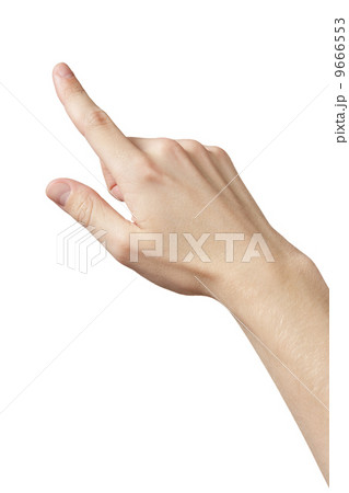 hand with index finger pointing and tapping, indicating a selection. Gesture for advertising or