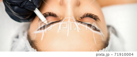 Beautician marking eyebrows with pencil
