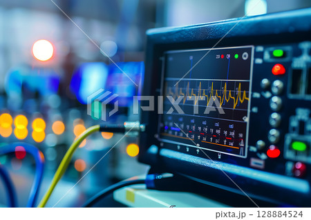 電子計測装置の波形モニターとデータ表示のアップ構図