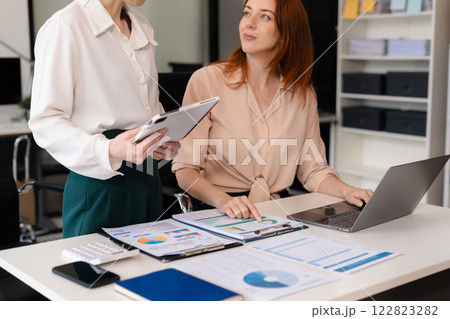Top view of start up business team holding paper while discuss idea. Symposium.