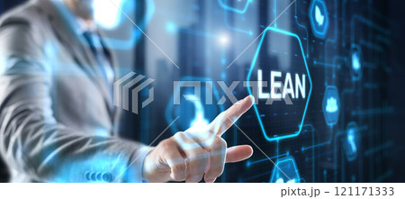 Lean manufacturing. Quality and standardization. Icon on Virtual screen