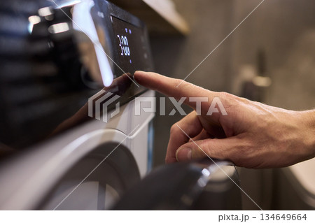 Individual Interacting with a Modern Washing Machines Control Panel for Efficient Laundry Tasks