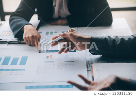 Business conference, marketing research, sales strategy analysis for business growth. and investment planning consulting. Accounting finance concept.