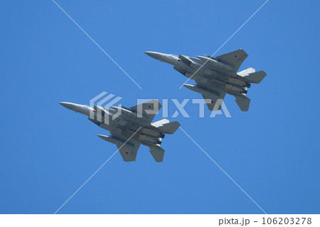 頭上を飛ぶ航空自衛隊F-15イーグル編隊
