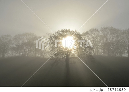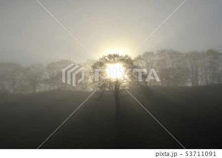 朝陽と一本の木