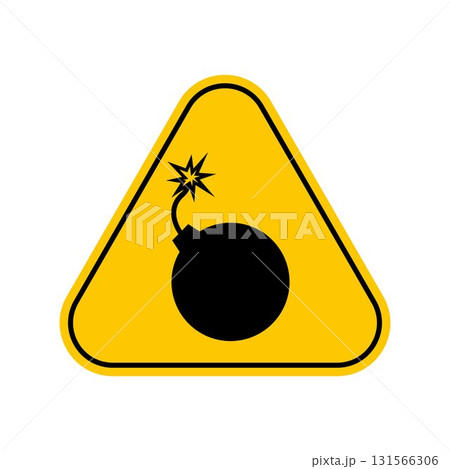 Bomb warning sign, Yellow Triangle Caution Symbol, isolated on white background, vector icon