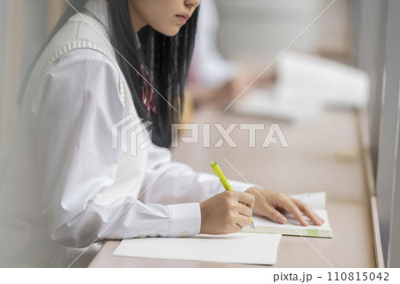 勉強する女子学生の手元