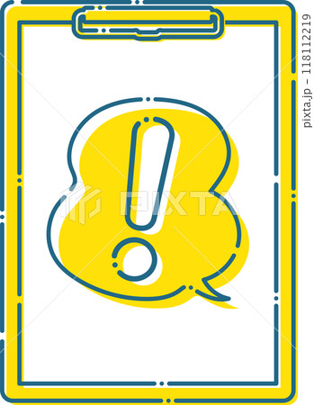 青い破線のシンプルなエクスクラメーションの吹き出しとバインダーフレーム