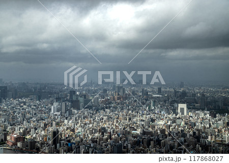 日本の東京都市景観 暗雲が広がった首都圏(大型台風10号が影響、首都圏にも雨雲)