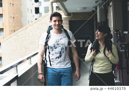 外国人女性と日本人ガイド 日本を旅行する外国人 外国人を案内する日本人 インバウンド イメージ素材