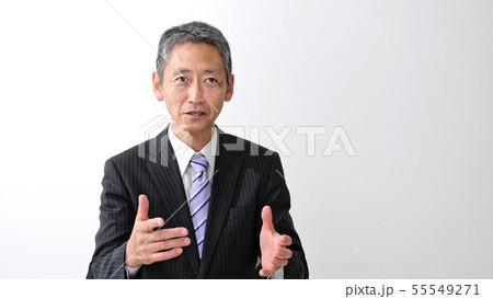 説明する中高年男性