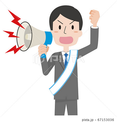 拡声器で訴える男性のイラスト