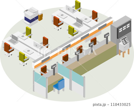 アイソメトリックな役所の窓口の内観のイメージ素材
