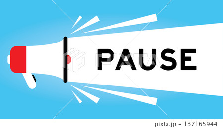Color megaphone icon with word pause in white banner on blue background